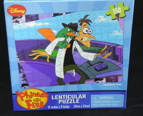 This Phineas and Ferb Lenticular Puzzle - 150-Piece features artwork based on the hit TV series Phineas and Ferb Your child will enjoy hours of fun re-creating scenes from the show Dr Doofenshmirtz and Perry Puzzle scene has a 3D holographic effect Completed puzzle measures 12 by 9 inches 150 p Read More..