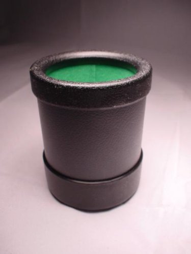 This well constructed 4in tall dice cup is covered with black leather-looking plastic on the outside and has a green felt inside lining Read More..